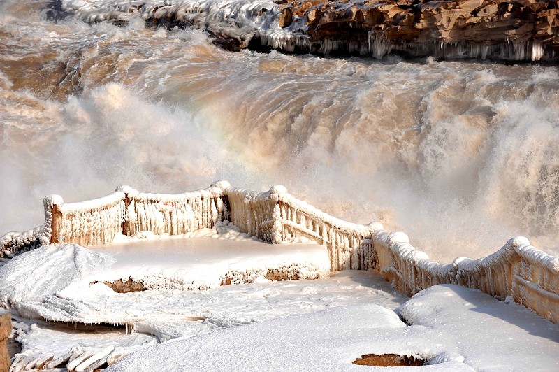 12月22日拍摄的壶口瀑布冰凌景观。连日来,受降温影响,位于秦晋大峡谷的黄河壶口瀑布出现奇特美丽的冰凌景观,吸引众多游客和摄影爱好者前来赏景拍照。 (新华社发)