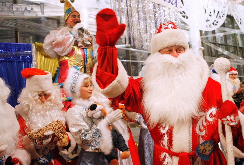 在西方许多国家和地区,乘坐雪橇为人们送来礼物的圣诞老人是每个家庭都非常欢迎的人物形象。而在俄罗斯,为人们送来新年祝福的则是严寒老人和雪姑娘。在莫斯科麻雀山上的市少年宫内,就有一家专门培训严寒老人和雪姑娘的严寒老人学校。图为严寒老人在毕业考试中。 (新华社发)