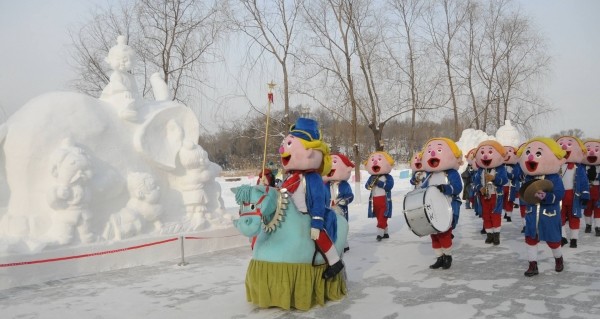 12月24日,一支卡通巡游队伍在哈尔滨太阳岛国际雪雕艺术博览会上表演。作为第26届哈尔滨国际冰雪节重头戏之一的第22届中国·哈尔滨太阳岛国际雪雕艺术博览会自12月20日正式开幕以来,游人络绎不绝。据悉,本届雪博会占地面积约45公顷,共有雪雕作品2200多件。雪博会期间,太阳岛还将举行国际冰上集体婚礼、摄影大赛等活动。 (新华社发)
