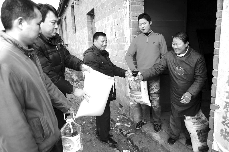 12月19日,随县高城镇国土资源所干部来到该镇七姑店村,给特困户王顺国、金贵家送去大米和食用油。高城镇党委、政府要求镇直各部门以实际行动关心帮扶困难群众。目前,镇直部门已经和全镇14个村、居委会70余个特困户结成对子进行帮扶。(本报记者