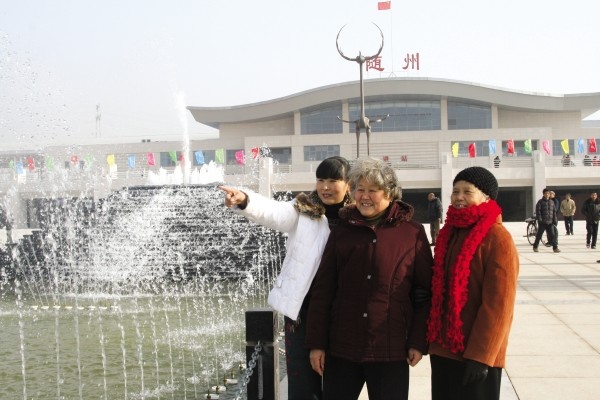 12月29日,市民乔丽娟带着78的母亲及亲属来到新火车站广场参观。据了解,新火车站配套工程竣工后,这里成了不少市民和游客观光的景点。 (本报记者 杨闻名摄)
