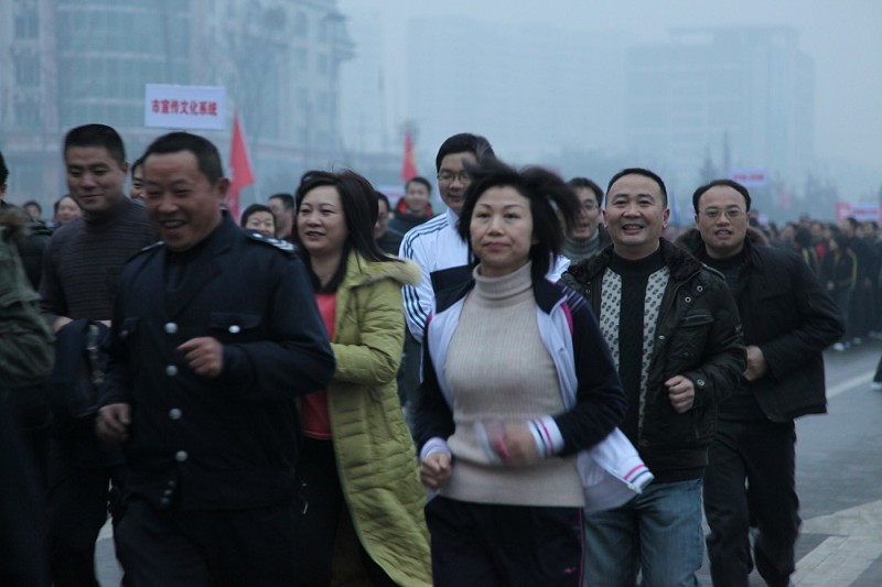 ③ 12月31日,四川省眉山市民正在参加长跑活动。当日清晨,四川省眉山市举行“第13届万众健身跑”活动,全市上万人组成不同的方阵参加长跑,喜迎新年到来。