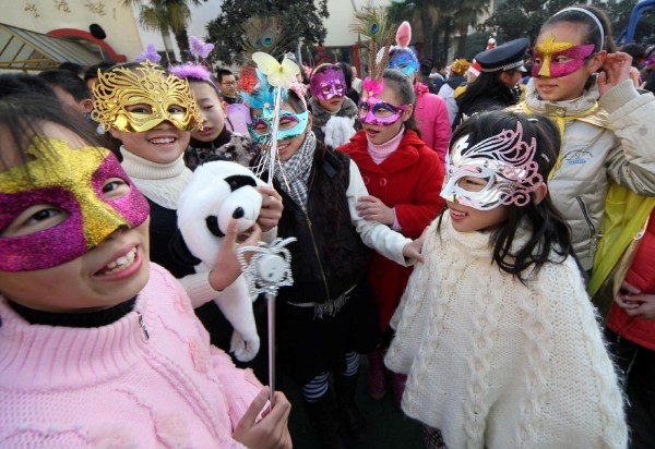 ② 江苏省南通市师范学校第二附属小学的学生在化装舞会上展示各自的装扮。当日,南通市师范学校第二附属小学举办迎新年化装舞会,来自六年级16个班的1000多名师生欢聚一堂,迎接新年到来。