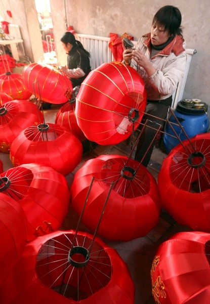 ④ 12月31日,稷山县稷峰镇杨赵村村民赶制大红灯笼。新年将至,在被誉为“灯笼村”的山西省稷山县稷峰镇杨赵村,村民们赶制大红灯笼,销往全国各地。