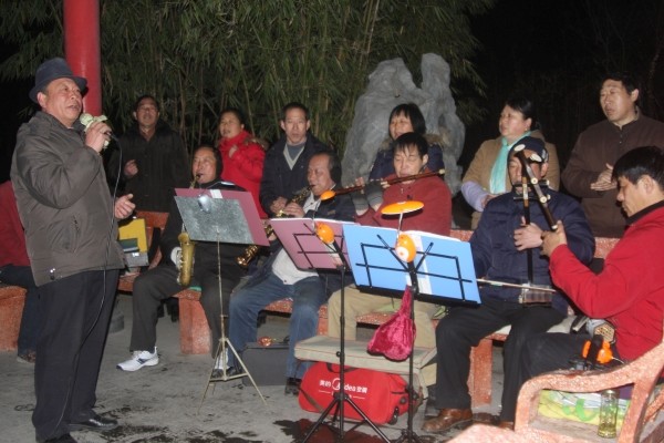 昨晚,皓月当空,歌声悠扬。随城神农公园众多市民欢聚一起,自娱自乐庆元旦。(本报记者 杨闻名 摄)
