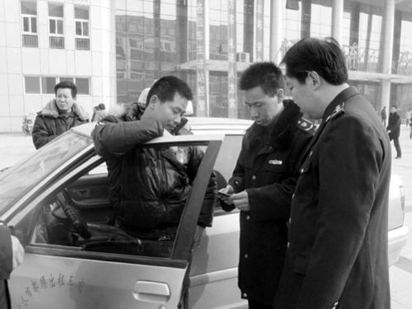 近日,广水市工商部门加强客运市场巡查力度,加大了对“黑的”的打击取缔力度。图为该局专业市场分局执法人员在对运营车辆经营资格进行检查。 (本报记者 宋俊超通讯员 育松摄)