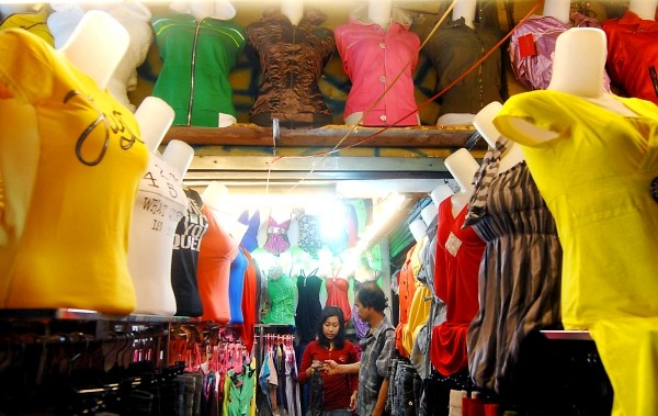 图为顾客在雅加达一个服装市场里购买衣服。 (新华社发)