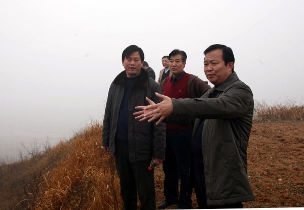 图为:市委书记马清明(右)考察途中对丹霞地貌的开发提出要求。 (本报记者 孙洪涛摄)