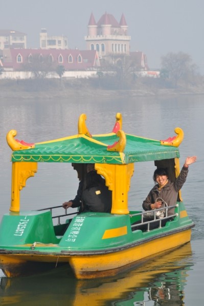 元月3日,白云公园薄雾缭绕,游人们乘上游船,在白云湖上度过元旦假日最后的一天。 (本报记者 陈德友摄)
