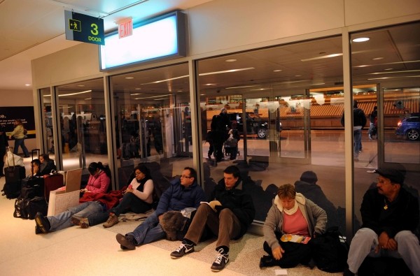 1月3日,乘客在美国新泽西州纽瓦克机场C航站楼等待重新安检。当晚在纽瓦克国际机场,因一名可能未经安检的男子从公共区进入隔离区 (即已接受完安检乘客进入的区域),致使已经通过安检进入隔离区的乘客被要求回到公共区再次接受安检,并且任何航班不得于3日晚从C航站楼起飞。 (新华社发)