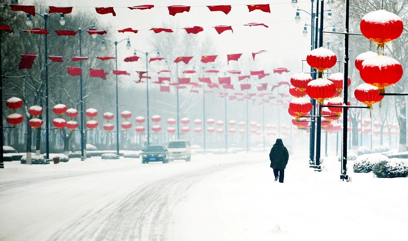 一月七日,市民和车辆在雪中行进。当日,冰城哈尔滨市天空飘起雪花,落雪给市民出行和城市交通带来了不便,也让前来这里观冰赏雪的游客感受到了北国冰城的独特风景和魅力。(新华社发)