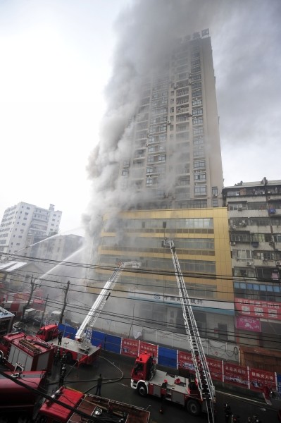 1月8日,消防官兵在灭火。当日9时28分左右,武汉汉正街利济南路25号硚房大厦发生火灾,经过67台消防车、200余名消防官兵的5个小时紧张扑救,位于全国著名小商品集散地武汉汉正街的硚房大厦大火终于被扑灭。周围商铺的商品交易和生活秩序也已逐渐恢复正常。 (新华社发)