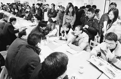 日前,合肥工业大学举办的2010年毕业生“就业市场双选会”现场。 新华社发