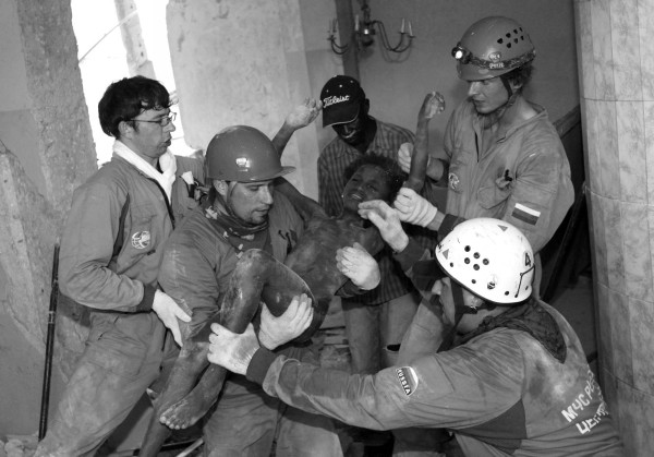 1月16日,在海地首都太子港,俄罗斯救援人员从废墟中救出一名被埋儿童。到16日,海地地震后72小时黄金救援时间虽然已过,但各国救援队不断发现幸存者,见证了生命的奇迹。(新华社发)