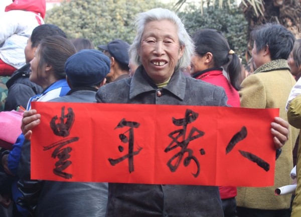 左图:“写春联,送春联”活动为村民们送上喜庆的祝福。