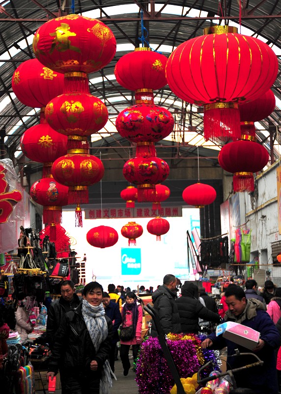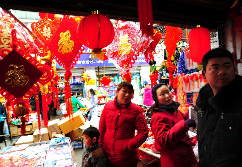 随着农历新年的临近,大红灯笼、中国结、“福”字等一系列喜气洋洋的节日饰品纷纷登场,浓浓的年味扑面而来(右图)。在鹿鹤市场一家饰品店里,各种饰品琳琅满目(下图)。