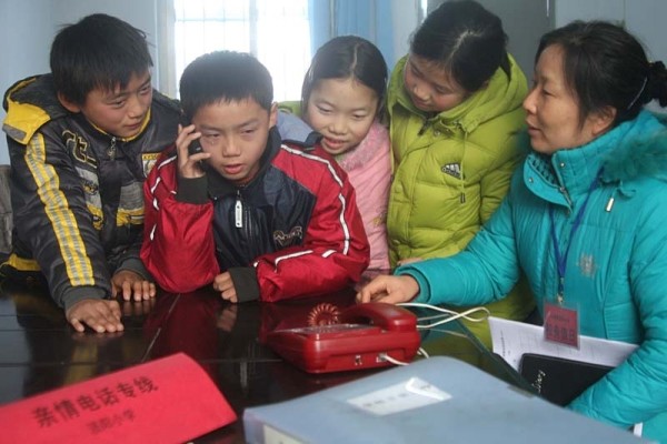 “妈妈,你在外面还好吗?什么时间回家过年……!”1月19日,随县环潭镇涢阳小学学生吴柏杰在校用免费“亲情电话”与远在外省打工的父母通话。 (本报记者 杨闻名 通讯员 王春江摄)