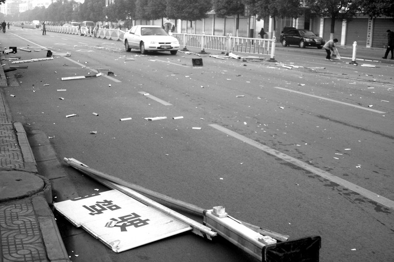 昨日凌晨,记者在随城沿河大道东方医院附近路段看到,一长约10米的道路护栏被撞,现场一片狼籍。据目击者吴先生讲,当日凌晨4点左右,一辆小型面包车把这里护栏撞断。事故原因警方正在调查之中。