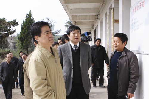 广水市委常委、纪委书记周德明(左二)陪同省农村党风廉政建设检查组到蔡河镇柏树巷村检查指导工作。
