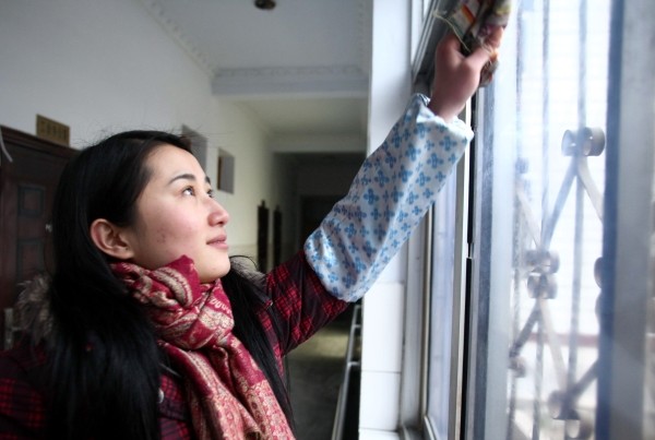 我市一些青年志愿者日前来到随州市第一社会福利院,为福利院的老人服务。志愿者们帮助老人打扫卫生,受到老人们的欢迎。(本报记者 孙洪涛 摄)