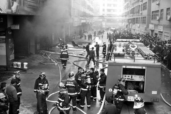 昨日,城区交通大道附近共兴花园隔壁一汽车维修站车间发生火情。40名消防战士和6辆消防车迅速赶到现场,经过近1个小时的奋战,将火扑灭。目前,火灾原因及财产损失正在进一步调查之中。 (本报记者 杨闻名摄)