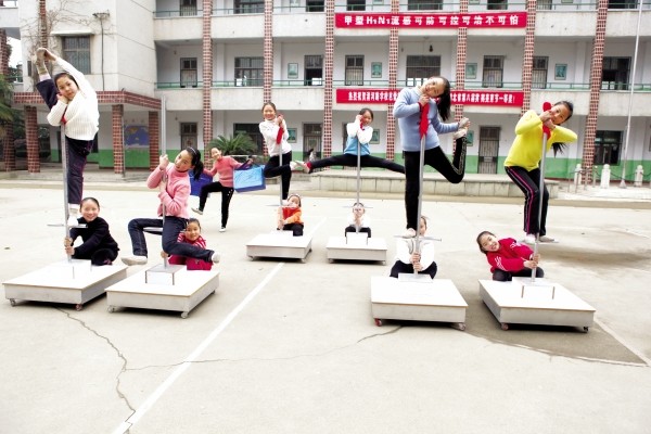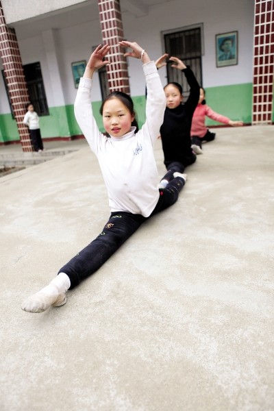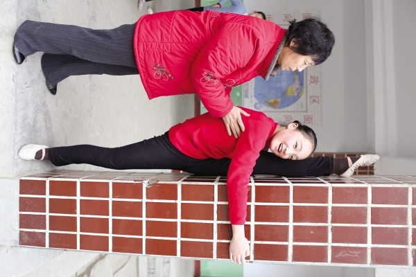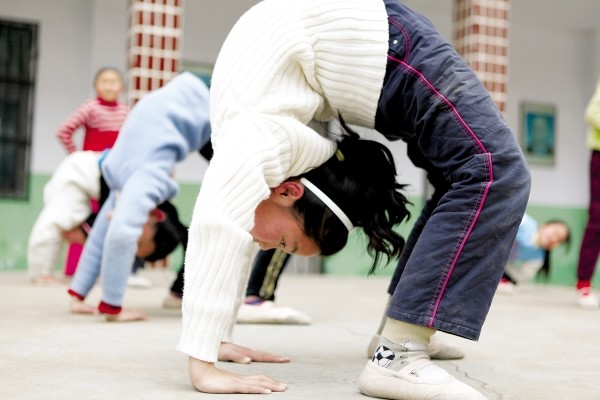 图3:下后腰最见功力,孩子们的目标是进一步“软化”腰肢,直至手脚连接。
