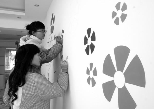 做什么好呢?一期中央电视台“交换空间”的节目给了她们灵感:我们不也可以在墙体绘画、家居美化上找到市场?