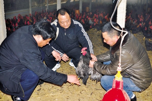 曾都区万店镇黄家畈村黑凤乌鸡养殖科普示范基地日前正式启动。计划年培训人数600人次,辐射带动700余户养殖专业户,3年后可使万店镇的黑凤乌鸡年循环养殖突破250万只。图为曾都区科协、曾都区财政局有关人员到基地跟踪项目建设,了解养殖发展情况。 (本报记者 陈德友摄)