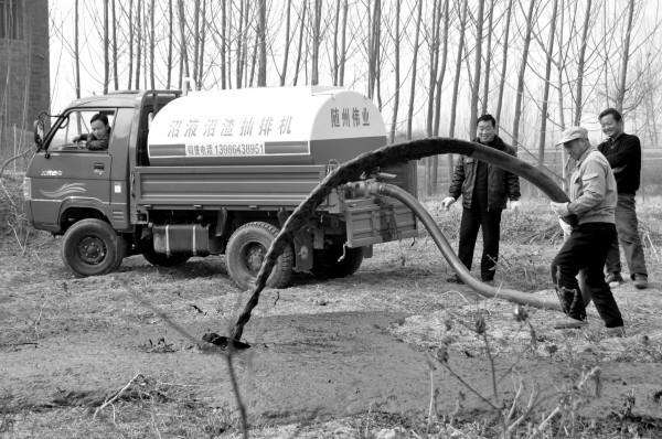 2月5日,市伟业专用汽车配件厂开发生产的“沼液沼渣抽排机”应用推广现场会,在随县安居沙湾村举行。经过实抽演练,该机受到了来自市农业局、能源办有关领导以及曾都、广水、随县的能源工作者的好评。 (本报记者 陈德友摄)