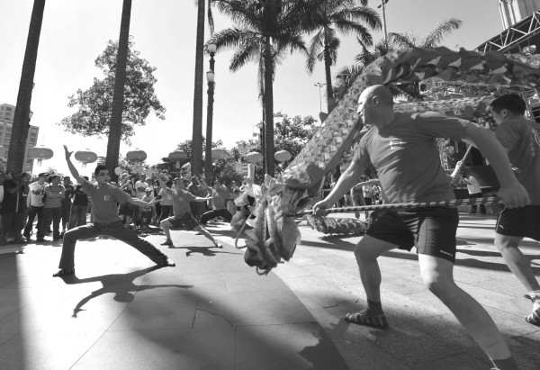 2月6日,在巴西圣保罗,来自中国的演员在表演舞龙。当日,“欢乐春节”庆祝活动在巴西圣保罗举行。该活动由中国驻巴西大使馆、中国驻圣保罗总领事馆、圣保罗州立大学孔子学院、圣保罗市政府和巴西华人协会共同主办,是中国文化部全球“欢乐春节”活动的一部分。 (新华社发)