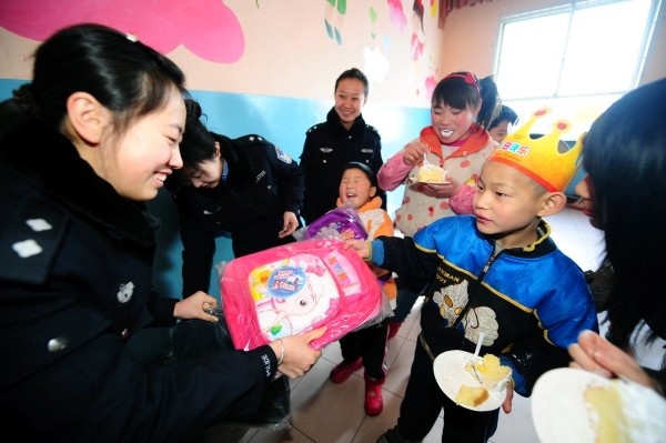 2月11日,太原火车站派出所的女子执勤队来到太原市儿童福利院,给孩子们送去新年的礼物。 (本版图片均据新华社)