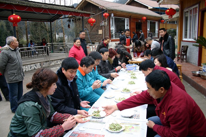 ·四川什邡村民与援建者一同包团圆饺子迎新年
