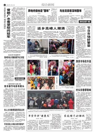 本报讯 记者唐天才报道:2月9日,曾都区“四大家”领导看望慰问了驻曾部队官兵,向他们送去慰问金,表达对官兵春节的祝福。 当日,曾都区区委书记杨增能、区长刘宏业一行,先后看望慰问了随