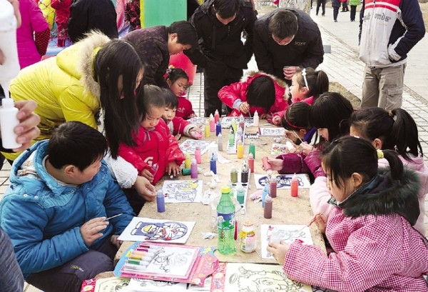 二月十七日,随州雪后初晴,孩子们纷纷来到户外开展各种活动。图为孩子们在随州城区神农公园儿童乐园画画。(本报记者李文军摄)
