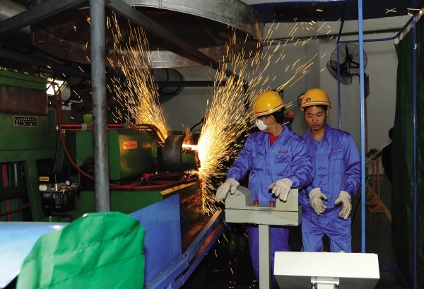 2月19日,东风公司随州车轮厂车轮生产车间一派繁忙的生产景象。工人们从正月初三开始加班生产赶订单。 (本报记者 李文军摄)