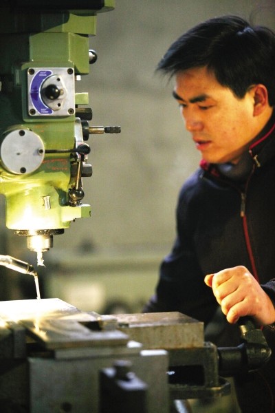 随州市三龙食用菌机械制造厂是一家机械加工企业。该厂发明生产的食用菌菌袋扎口机深受我市菇农的欢迎。该厂负责人介绍说,今年,他们将针对农村实际,多发展农村实用的农机产品。 (本报记者 孙洪涛摄)