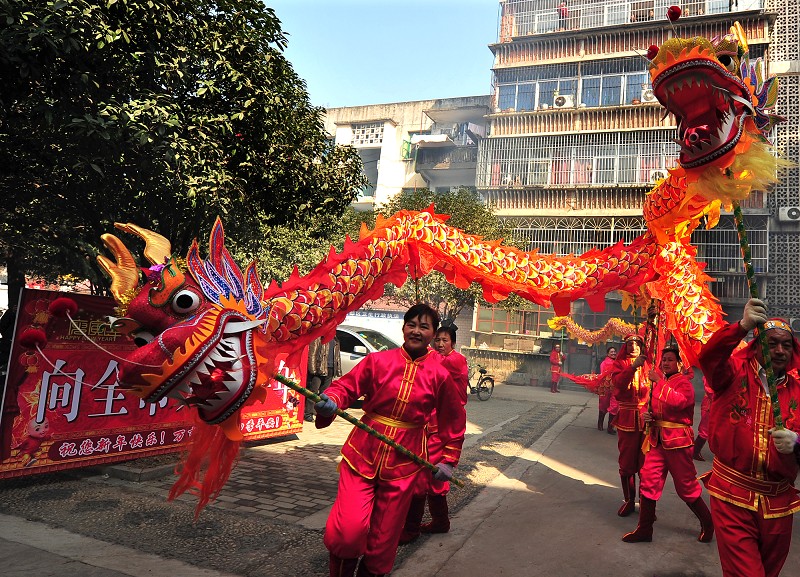 2月20日,曾都区东城办事处组织“舞龙”、“采莲船”、“蚌鹤精”等传统民间文艺节目,分别到城区各企业、党政事业单位和社区表演,为群众带来节日的欢乐。(本报记者 李文军 摄)