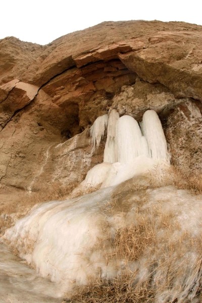 位于新疆的库姆塔格沙漠大峡谷全程100余公里。今年年初,新疆地区大面积降雪,库姆塔格沙漠大峡谷水量增加,出现了罕见的冰瀑、冰川奇观。图为新疆库姆塔格沙漠大峡谷出现的罕见冰瀑奇观。 (新华社发)