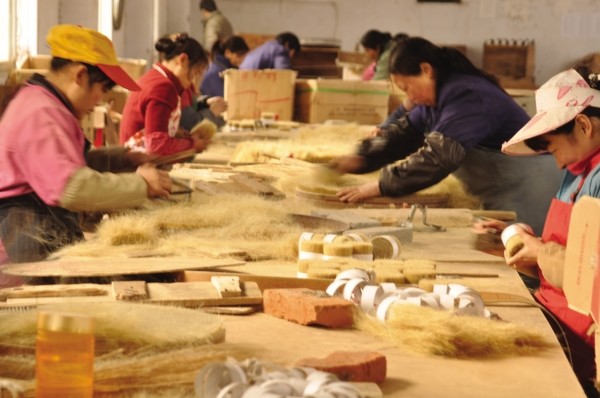 随县小林镇隆兴鬃业公司加大外贸出口系列产品开发。开春之际,公司紧张投入生产,赶做订单业务,满足市场需求。 (本报记者 陈德友摄)