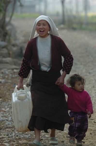 2月22日,在广西隆林县 峨乡常么村,村民在山洞外等候取地下水。