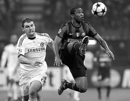 在24日进行的欧冠联赛八分之一决赛首回合比赛中,国际米兰队凭借坎比亚索的进球在主场以2:1险胜切尔西队(如上图),球队主教练穆里尼奥也获得了首次面对 “老东家”的胜利。