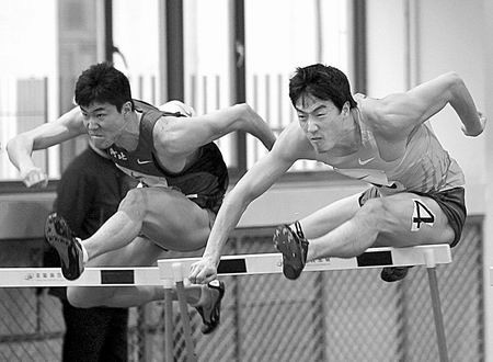 随后的比赛刘翔立刻调整节奏,但第一栏的节奏被打乱后,他的调节也显得艰难,在第三栏时又被打了一下,预赛里刘翔在第一栏就占到领先位置,但决赛两次打栏后刘翔与身边的大史和尹靖跑了个旗鼓相当。