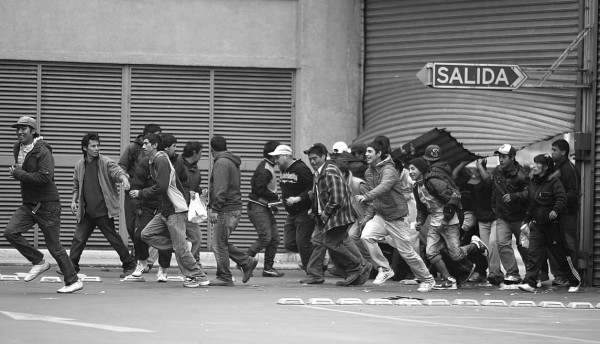 2月28日,在智利南部康塞普西翁市,当地市民强行进入一家关闭的食品商店哄抢食物。 (新华社发)