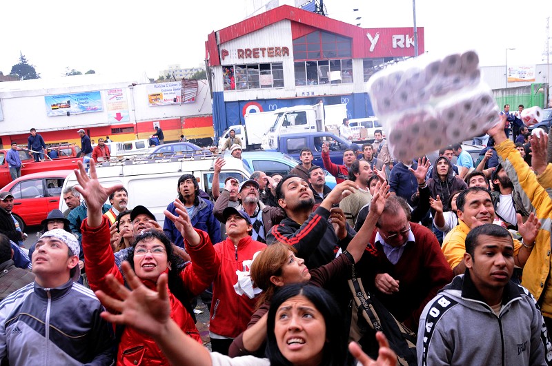 3月1日,在智利地震重灾区第八大区首府康塞普西翁市(康市),灾民在街头哄抢物品。 (新华社发)