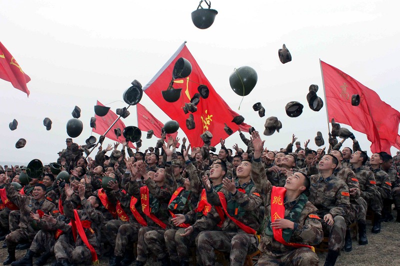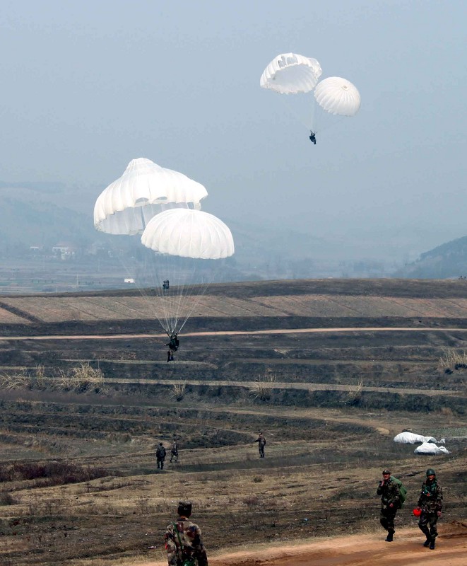 “嘀—嘀—”,绿色的信号灯开始闪亮,飞机进入预定空域,800米高度,跳伞开始,“跳——”投放员手一挥,第一名跳伞员跳向空中,伞兵依次空降,一时间,朵朵绽放在蓝天,3分钟后,新战士们成功着陆,脸上露出了灿烂的笑容。2月27日,记者来到大别山腹地某军用机场,用镜头记录驻随空降兵某部500余名新兵虎年首次示范跳伞的精彩瞬间。