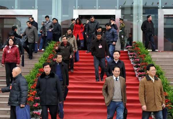 昨日,政协随州市二届四次会议圆满完成各项议程,委员们满怀信心地步出会场,奔向自己工作岗位。 (本报记者 李文军摄)