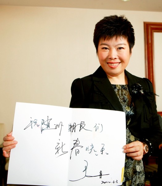 于丹题词:“祝随州朋友们新春快乐”。 (李星杰摄)
