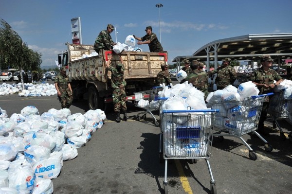 3月3日,在智利南部重灾区塔尔卡瓦诺市,智利军人准备向民众分发人道主义救援物资。智利2月27日发生里氏8.8级强烈地震,基础设施受损严重,大量灾民流离失所。目前大量的救援物资正陆续抵达地震灾区,救援人员将挨家挨户分发。 (新华社发)