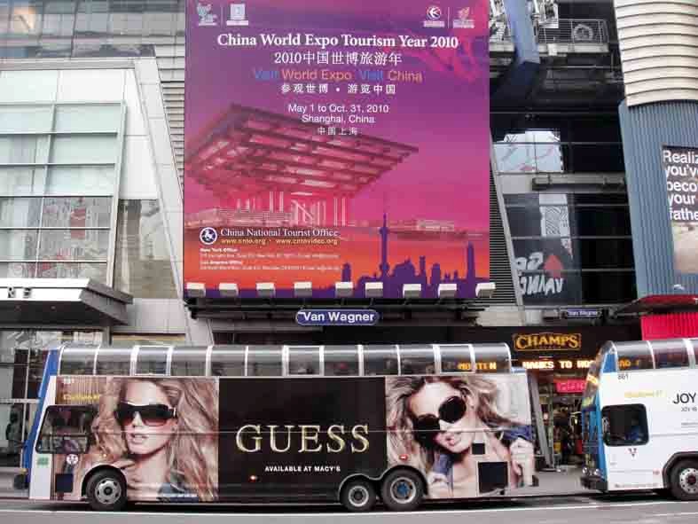 3月5日,2010中国世博旅游年的广告牌竖立在美国纽约时报广场。中国国家旅游局在全球百城,通过文字广告、户外广告、说明会等形式向世界介绍中国世博旅游,希望吸引更多的国外游客参观上海世博会,游览中国。 (新华社发)