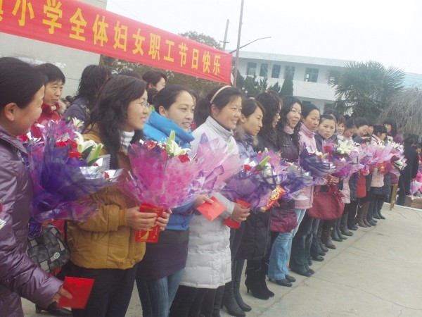 3月8日,曾都区万店镇小学庆 “三八”活动丰富多彩。学生们向该校的女教职员工送去了一束束鲜花,向她们致以节日的问候。(本报记者 陈德友通讯员 刘福兵摄)